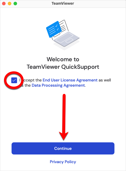 If you accidentally exit TeamViewer, you can either repeat the above steps or go to your Downloads folder and double-click the TeamViewerQS-idos[…] file to bring back the remote access window to your screen – whichever is easier for you.