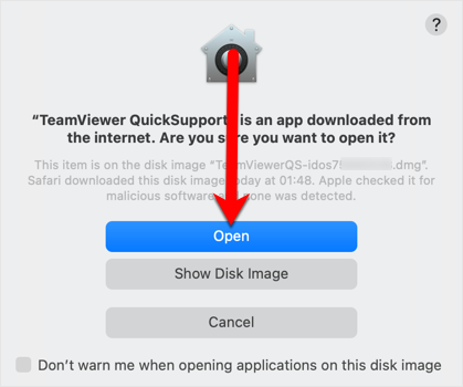If you accidentally exit the remote session, double-click the TeamViewerQS-idos[…] file saved to your Downloads folder to bring it back.