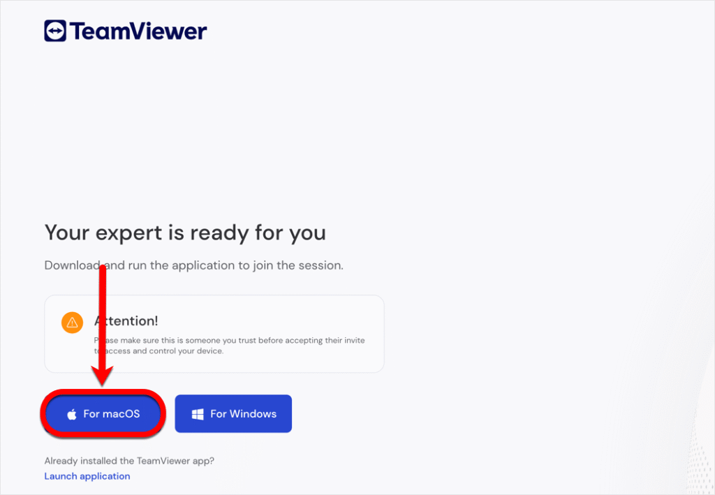 - If TeamViewer is not installed on your computer, click the button that says For macOS.